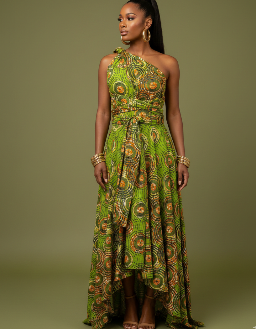 GREEN INFINITY AFRICAN PRINT HIGH-LOW DRESS